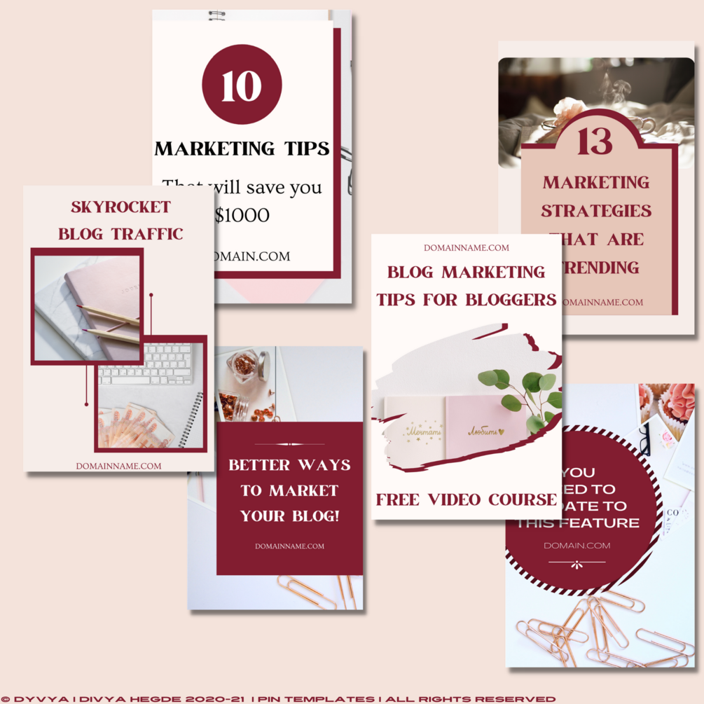 - Create unique, beautiful pins as per your aesthetic and improve click through rates to your blog! Get the best out of Pinterest marketing.